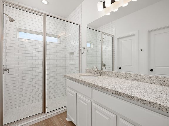 As you approach the front of the house, you're greeted by a beautiful side courtyard, perfect for entertaining outdoors. This inviting space leads you into the heart of the home. Step inside and find yourself in an open-concept family room, dining area, and kitchen. The kitchen is equipped with upgraded pure white painted maple wood cabinets, granite countertops, and GE stainless steel appliances. The home includes three well-sized bedrooms, made for privacy and space. Plus the home offers tile flooring throughout home, brushed nickel plumbing, and satin nickel hardware. Maple wood cabinets Granite countertops Tile flooring throughout home GE stainless steel appliances- Gas *Photos do not represent the final production of the home