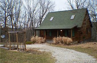LEAVE THE CITY LIGHTS BEHIND YOU! Adorable 1 1/2 story log home- Situated on almost 3 1/2 acres. Festus school district-Enjoy your morning coffee on the huge covered front porch. 2 bedroom and 2 full baths each located on different floors. Soaring ceiling in the family room with skylight and beautiful stone fireplace. Open floor plan. Windows surround the kitchen with breakfast bar. Recently added large sunroom with an abundance of windows. Unlimited possibilities for this room. Open wood staircase leads to the loft area where you will find bedroom over looking lower level. Full walk out unfinished basement. There is also a creek on the property and circle drive. This is a must see!