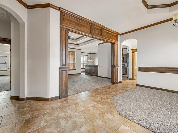 This home has so much to offer! 3-bed, 2 baths, plus an office. New roof (house and shed) and gutters fully replaced in 2022. Two dining rooms, tall ceilings, crown molding and detailed woodwork throughout. The spacious living room features a tray ceiling and a fireplace with a wood mantle. Step into the kitchen to find granite countertops, a large pantry, an island with an outlet, breakfast bar, plenty of custom cabinets for storage, and an eat-in dining area. The large primary bedroom is separate from the other bedrooms for privacy; offers an ensuite with double sink vanity, jetted bathtub, separate shower, water closet, and access to the walk-in closet. Backyard includes an F5 rated OZ above ground storm shelter, and a covered patio that overlooks the fully fenced backyard. 3 car garage has a built-in safe. This home is located within the Canterbury community which offers amenities such as a community pool, playground, and a poolhouse. Convenient access to John Klp Turnpike, and less than 10 minutes to food and shopping options. You will love everything this home has to offer, schedule your showing today!
