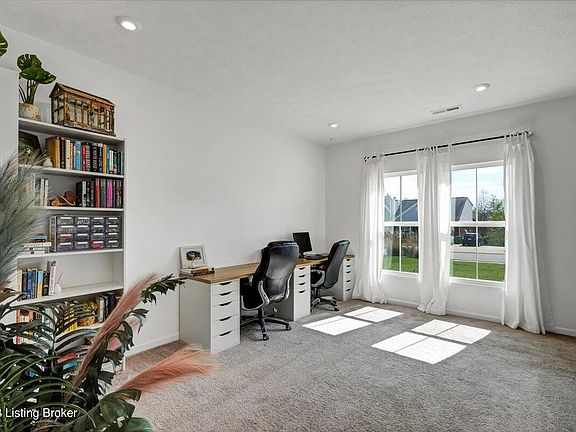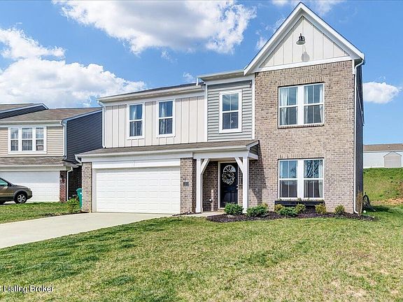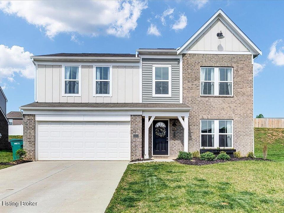 Welcome Home! This newer construction home, built in 2020, provides an amazing opportunity for its next owner! Featuring custom upgrades of 9-foot ceilings, upgraded interior doors, and custom accent walls, this home is a must see. Not to mention, it is complete – no waiting on construction! Great curb appeal greets you as you walk up and the neutral brick with green accent makes this home a standout. You enter a bright and open foyer with beaded accent wall. There is flex space to the right, currently used as an office, this could be a formal dining room, formal living room, or a playroom. The remainder of the first floor provides an open layout featuring the kitchen with abundant cabinets and counter space, center island and walk in pantry, dining area accented by a unique gold and glass chandelier and the considerable family room with large windows allowing natural light to flow and the cool yet functional entertainment center which remains! There is a convenient half bath just before you reach the stairwell. Upstairs, you will find an open loft area, perfect for a TV room or workout space! The sizeable primary is just off the loft and showcases a bold black accent wall, primary bathroom featuring the most perfect area for a vanity and chair, walk in shower and double bowl vanity. Additionally on the second floor, there are two large bedrooms each with substantial closets, as well as a laundry room with storage space, and another full bathroom with bathtub. This home is like new, but has so much more personality than a standard build, from the accent walls, to the cool lighting, and SO MUCH SPACE. There is not much more you could ask for in a home- this one is a gem! Schedule your showing today!