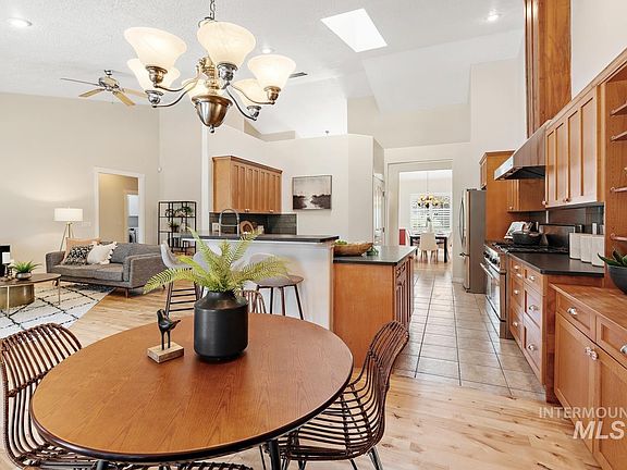 This pristine, custom home has 3 distinct separate living areas providing so much flexibility and opportunity. The two main level primary suites each grace their own side of the home with communal living in between. The third living area is upstairs and could serve as a bonus room, with cabinetry & sink. The spacious main level den/office includes a Murphy wall bed and could be used as a fourth bedroom. The delightful kitchen boasts a 6 burner JennAir stainless gas range, stunning quartz countertops, a huge walk in pantry and convenient breakfast bar. The park like yard is spectacular, with a soothing water feature, and a patio that is wired for a hot tub. Enjoy low water bills with pressurized irrigation. This popular neighborhood is convenient to anywhere in the valley. Many ADA compliant features-roll under sink, roll in shower, wide doorways, and tasteful ramps to the inviting outdoors.