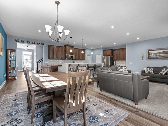 Stunning 2021-built 3BR/3BA/3-car home in Alexander Woods! The inviting foyer opens to a spacious great room with living, dining, and kitchen-perfect for entertaining. Main-floor owner’s suite offers large windows, tiled shower, dual sinks, and walk-through to the walk-in closet. Convenient main-floor laundry room, and mudroom off the garage. The beautiful kitchen boasts a large 10' center island, a grand walk-in pantry, and coffee bar nook. Sunroom walks out to a large paver patio, and lovely, landscaped yard. Additional highlights include a cozy gas fireplace, LED lighting, and functional floor plan. Upstairs features a versatile loft-style flex space, two spacious bedrooms, full bath, storage room, and the utility room. One owner and pet free home! HOA includes lawn care, snow removal, and in-ground sprinklers for easy living. The garage is wired for EV charger. Prime Blaine location close to parks with walking paths, shopping, dining, coffee, golf, soccer complex, and more. Better than new and move-in ready!