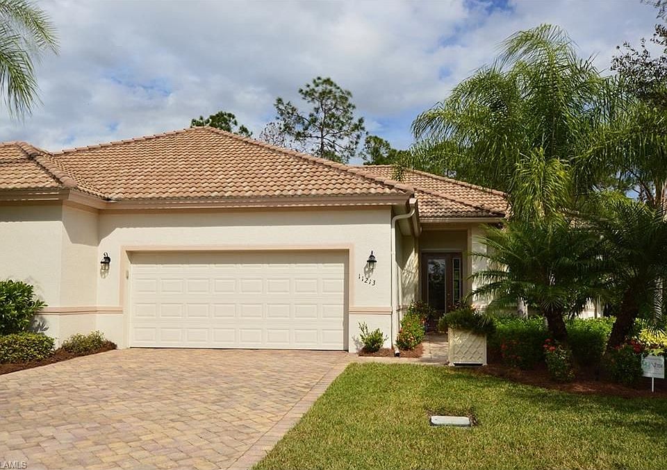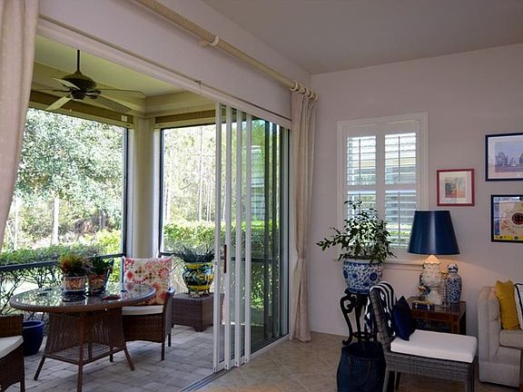 V.2388 - Remember the Old Neighborhood? Where neighbors looked out for each other & there was the occasional block party? You can have that again in this Centex built, Bedford Model Villa! The view from the pavered lanai overlooks ample green space & natural preserve. Inside enjoy the stylish decor. With 2 bedrooms, 2 full baths, den/office, spacious kitchen, attached 2 car garage & over 1550 sq. ft. of interior living space. It is a dream of efficiency, space & comfort! Diagonally tiled floors throughout the living area, carpeted bedrooms & plantation shutters are just a few of the special touches added by the owner. Accordion shutters & Storm Smart roll down screens were added in 2013. With its low maintenance and easy-care design, you will have plenty of time for the world of fun at your fingertips! Nestled in the carefully planned community of Bridgetown at The Plantation, the home is surrounded by plush landscaping, reflecting lakes, neighborhood sidewalks & exclusive amenities for each homeowner.