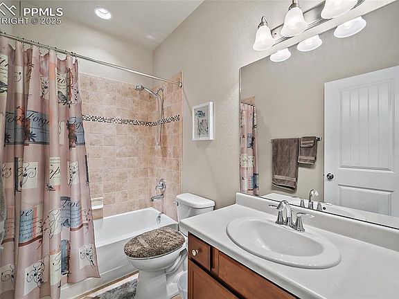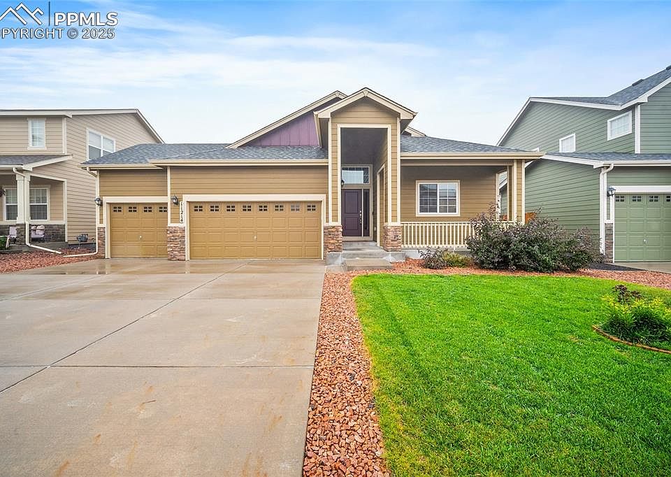 Welcome to a beautifully maintained home in the desirable Paint Brush Hills community of Falcon. Meticulously cared for and used as a second home by the owners, this property feels practically brand new. The open layout is highlighted by a dining room that flows seamlessly onto a massive, fully permitted 40’ x 11’ composite deck—the perfect spot for entertaining or relaxing outdoors. The kitchen features sleek stone countertops, while the primary suite offers a spacious walk-in closet and a luxurious five-piece bathroom with dual sinks, soaking tub, and ceramic tile flooring. Additional upgrades include a heated three-car garage, fresh exterior paint, and a newer roof (2021) with Class IV hail-resistant shingles for peace of mind. The backyard is designed for easy living and low-maintenance landscaping, with a turf patch that won't require mowing every weekend and stays green year round. Paint Brush Hills offers a convenient location close to Falcon Middle and High Schools, The shops at Meridian Ranch, and just a short drive to Peterson and Schriever Space Force Bases.