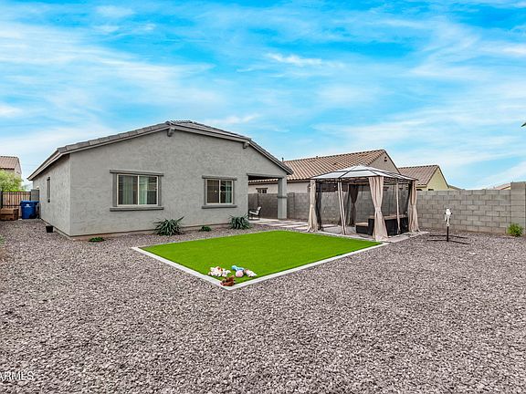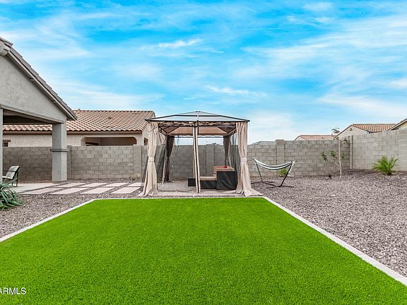 $8,000 credit offered with purchase of this home! Modern, new-build style living with a fully finished backyard instead of dirt and a full appliance package! Discover all the charm of this lovely single-story home in Verde Trails! Inside, you'll find spacious living areas perfect for entertaining and relaxation, with tile flooring, plenty of natural light, and neutral tones. The well-appointed kitchen boasts recessed lighting, espresso cabinets, granite countertops, stainless steel appliances, and an island with a breakfast bar. Get a good night's rest in the main retreat, complete with a closet and a bathroom. The backyard features a cozy covered patio ideal for morning coffee, a grass area perfect for games, a gazebo ideal for gatherings, and plenty of space for outdoor fun!