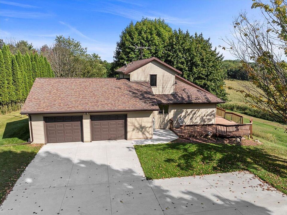 Welcome to country living! This 4-bedroom, 2-bathroom home, perfectly situated on a sprawling 5.7-acre parcel offers a unique blend of comfortable family living and expansive outdoor space. The main floor provides a primary bedroom, full bathroom, laundry and eat in kitchen, along with a living room that provides great views of the scenery outside. Upstairs, there are 2 bedrooms and another full bathroom. Downstairs, you will find another bedroom and rec room that provides plenty of space to entertain. Stepping outside you'll see the beautiful wrap around deck that is great for relaxing and an extra 28x36 garage that can easily fit 2 cars or supply plenty of space for a workshop.
