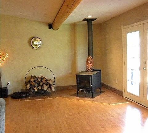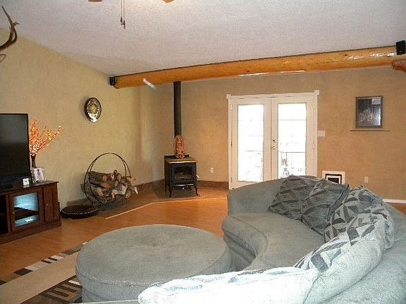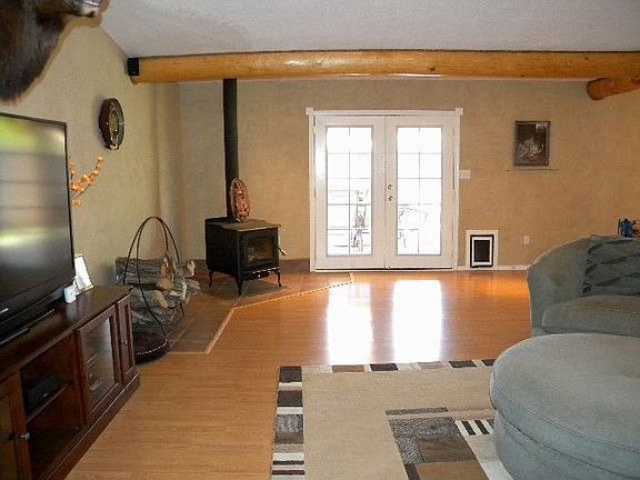Gorgeous Artistic home in Mirabella Sub, convenient location, near shopping, KAFB, Sandia Labs, Community Ctr. Open floor plan, great room, upgraded kitchen appliances, light fixtures, laminate floors, tile, pellet stove, wood beams, nichos, arch accents, ceiling fans, variance paint. Master BR separate from other rooms, MB garden tub and really large walk in closet, Refrigerated air. Enjoy entertaining outdoors under the covered patio with wood beams and lights.