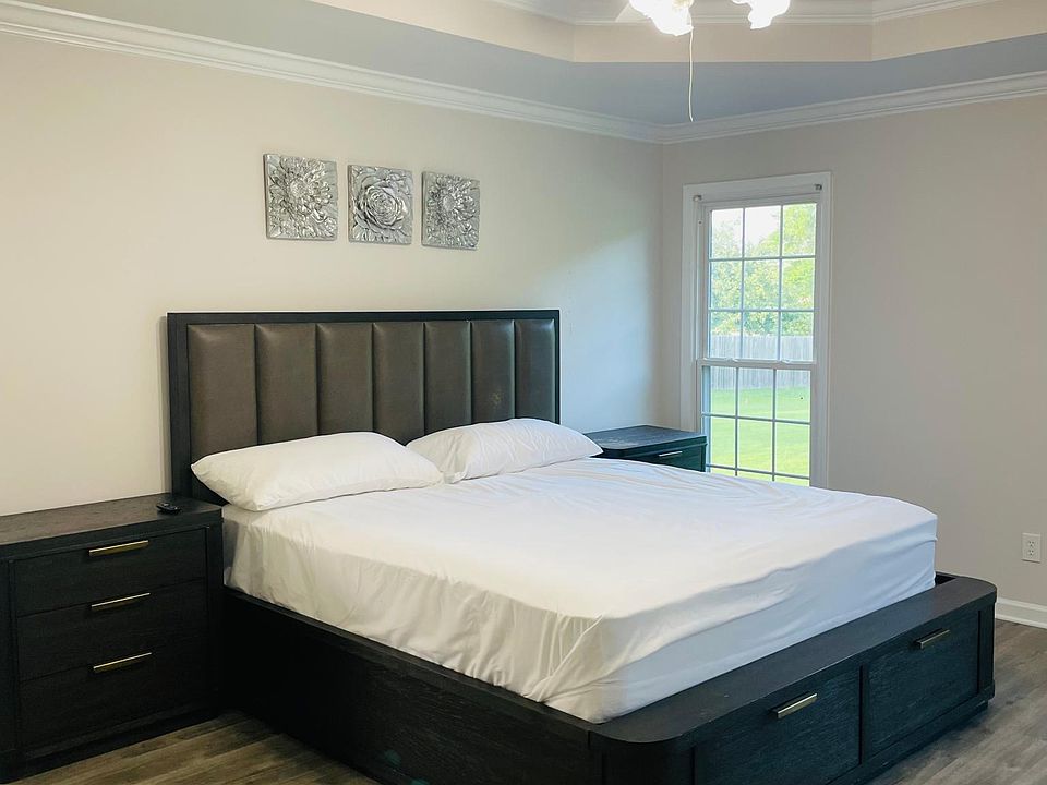 Freshly painted, beautifully furnished with 3 bedrooms and 2 bathroom ranch home. Updated stainless steel appliances with 65 tv, spacious u-shaped sofa chaise lounge. The dining room includes seating for 6 and is adjacent to the kitchen and living room. The kitchen is fully equipped with everything you will need to enjoy your stay-dishes, silverware, pots and pans, blender, toaster, list goes on and on. 2 bedrooms have king size beds, 1 bedroom has queen size bed, nightstands, dressers, tvs, with walk in closet. All furniture in the home is brand new for your enjoyment. High speed internet and laundry facilities at your convenience in home. The house is currently listed on AirBNB and will be available starting October 23rd.