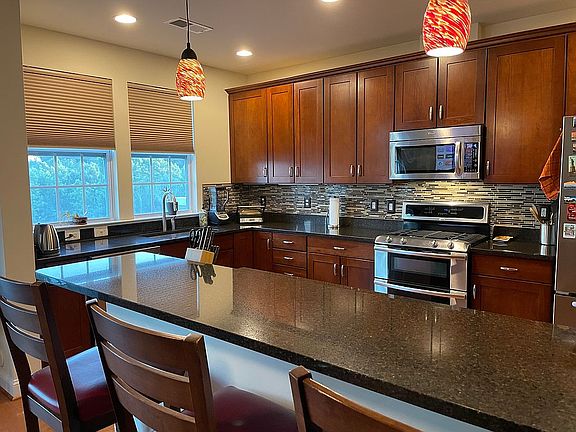 Forget about lawn care and other exterior maintenance with this spacious condominium built by Bozzuto. Centrally located in Midtown near the pool and community center, this home is situated on a quiet side-street and overlooks a pond and preservation land. The main level offers open concept living and features gleaming hardwoods, crown molding, and a custom built-in study. The upgraded chef's kitchen boasts beautiful 42-inch cabinets with soft close hinges, stainless steel appliances, quartz countertops, and a large double-door pantry. The extensive peninsula with breakfast bar provides an abundance of additional counter and eating space, all overlooking the family room with a cozy gas fireplace and access to a private balcony. The expansive dining room and living room provide extensive living space with ample natural light. An adjacent home office with build-in desk for two and shelves offer a convenient place to work from home. On the upper level, the large owners-suite has dormer windows, an oversized walk-in closet, and luxurious en-suite with soaking tub, separate shower and quartz-topped double vanity. Two spacious bedrooms, a full bath, and convenient laundry room complete the upper level. Leave your car in the attached, one-car garage with added built-in storage shelves and enjoy the convenience of everything you need nearby, including a grocery store, restaurants, and shopping. You will love living in Maple Lawn where amenities abound and include a community center, pool, fitness center, acres of park space, walking trails, playgrounds, dog park, sport courts and so much more! Best value in Maple Lawn - don't miss this one! Note: There are condo fees of $310 per month, in addition to HOA dues.
