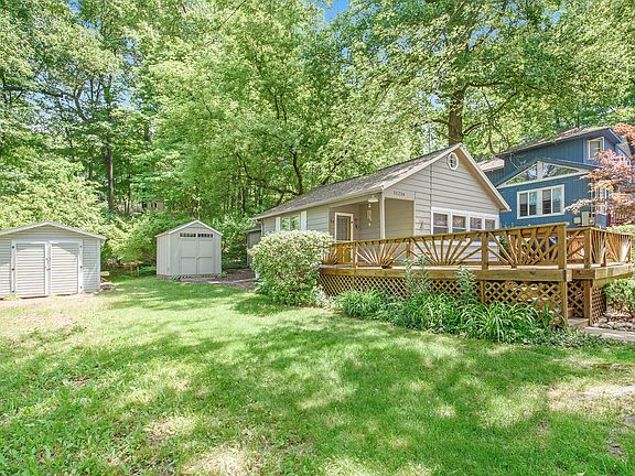 CHARMING COTTAGE YOUR PERFECT ''GET AWAY'' with beautiful Corey Lake access. Set back on a private site in the Corey Lake neighborhood. Move in and relax w/ easy care flooring, 2 nice bedrooms (the Master with lots of closets and knotty pine), bath, & very quaint kitchen. The enclosed front porch has many windows & is a great sitting area and dining area. A very large front deck is great for grilling and outdoor entertaining. This seasonal home is excellently maintained & move right in as appliances, furnishings, dishes are all set for you. The oversized 2 car garage can hold your lake boats & toys & then there is a new 8 x 10 shed. Dedicated in the plat is a 10 ft access and there is a very nice dock w/ boat space and it is located a stone's throw from this cottage.