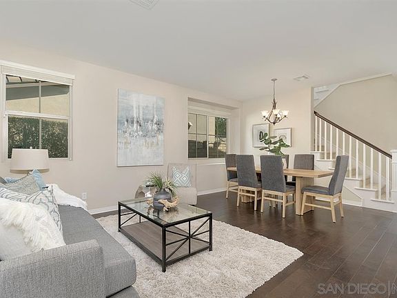 This beautiful Carriage Run home is the biggest floor plan in the community and sits on a large, south facing lot. It features 4 bedrooms, 3 bathrooms, an upstairs loft, hardwood flooring, and a master retreat with gorgeous canyon views. When you're not in your gourmet kitchen with sparkling granite countertops, custom backsplash, and raised panel cabinetry, then relax in the lush backyard under the romantic trellis surrounded by mature landscape. Perfectly located to the 56, 5, and Vons shopping center.