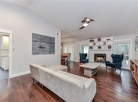 This gem will not last long! This home has been completely updated and renovated. Step inside into this easy flowing floor plan with a fabulous location! Spacious great room w/vaulted ceiling, stone surround wood burning fireplace w/attractive mantel w/marble hearth and modern shiplap accent wall. Don't miss the wonderful custom walnut shelving unit and separate shelves. In the bright and airy white kitchen, you'll be pleasantly surprised at the amount of cabinets and the storage they provide. The kit boasts newer cabinets, concrete counters, newer appliances and attractive tiled backsplash. The large primary bedroom has a customized closet system. The beautifully remodeled primary bathroom is a serene and elegant space that is a great way to start and finish your day. A frameless shower that has been coated to prevent buildup. The wide plank-engineered hardwoods tie everything perfectly together. New windows, fenced yard w/shed makes this home one you'll want to get into to see!