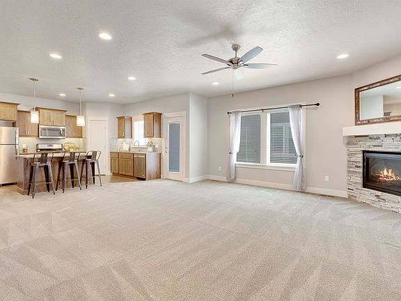 Wonderful, quality built, low maintenance home in the sought after Hazelwood Village Community in South Boise. This community offers beautiful common grounds, lush landscaping, club house and two pools, play ground, dog park and vegetable gardens. This home offers an open floor plan, spacious bedrooms with closet built-ins, a beautiful upgraded kitchen, island, granite countertops throughout and beautiful backsplash. Spacious living room boasts a lovely stone fireplace. This split floor plan makes the master suite feel very private. The master bathroom gives a spa-like feel with oversized walk-in shower, dual vanities and separate vanity table. Mudroom and laundry room is conveniently located off the master bedroom. The 2 car garage is oversized with plenty of storage and shelving. Home has been pre inspected! And is move in ready! This is a must see. Home warranty included!