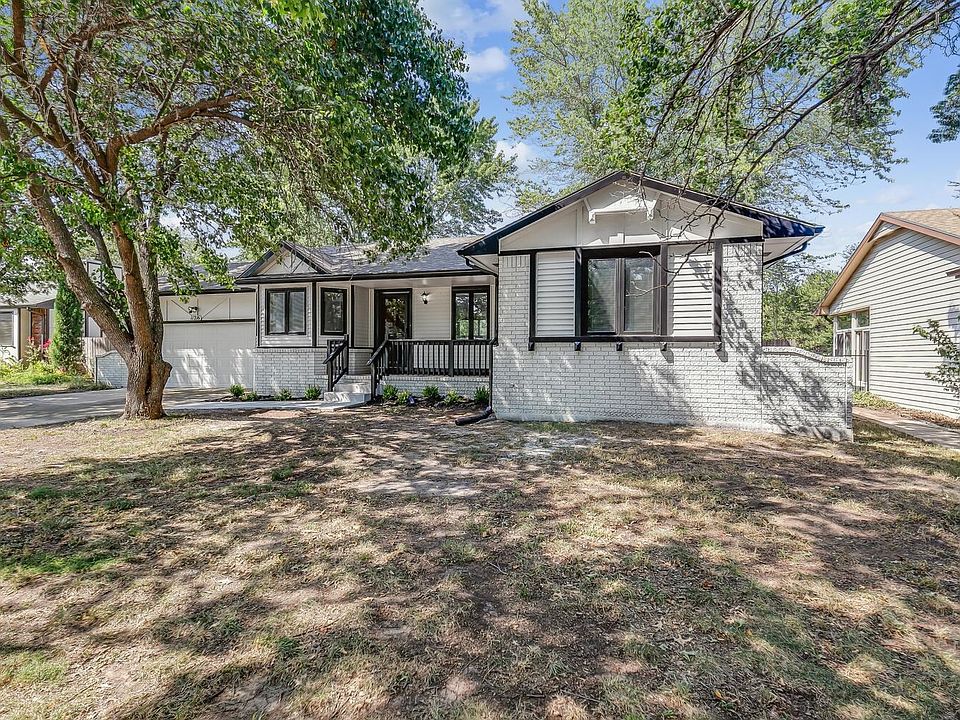Welcome to your dream home in the heart of northwest Wichita! This exquisite three bedroom, three bath ranch boasts a prime location and a plethora of features that will truly capture your heart. As you approach the property, the exceptional curb appeal draws you in, with tall trees that frame the home's charming whitewashed brick exterior. The covered front porch provides a perfect spot for outdoor seating, where you can enjoy the serene neighborhood. Enter the home to find a bright and spacious living room. Vaulted ceilings create an airy and open atmosphere, beautifully complemented by the gleaming wood laminate flooring that guides you through the space. The focal point of the room is the stunning floor-to-ceiling brick fireplace, perfect for cozy evenings with loved ones. Natural light floods the space through sliding doors that seamlessly connect the indoors to the outdoor back deck, extending your living and entertaining space. Hosting gatherings is a breeze with the spacious dining room that effortlessly flows from the living area. The kitchen is a culinary enthusiast's haven, boasting quartz counters, updated tile backsplash, new fixtures, and stainless steel appliances that blend style and functionality. Retreat to the generous master suite, a private oasis that offers direct access to the back deck. The en suite bathroom, complete with elegant granite counters, provides a luxurious space for relaxation. Venturing downstairs, you'll discover a basement family room that promises endless possibilities. Whether it's hosting game nights, movie marathons, or simply unwinding, this space accommodates it all. There's also a third bedroom, third full bath, and a bonus room in the basement, providing flexibility and ample space for various needs. With abundant square footage, there's plenty of room for everyone to spread out comfortably. Finally, step outside and take in the views. The back yard is a haven for outdoor enjoyment, featuring a spacious deck where you can bask in the sun or enjoy outdoor dining. The fully fenced yard ensures privacy and security, while a sizable storage shed can house your tools and lawn equipment. Don't miss out on the opportunity to make this remarkable ranch your forever home! Schedule your showing today and come get it before it's gone!