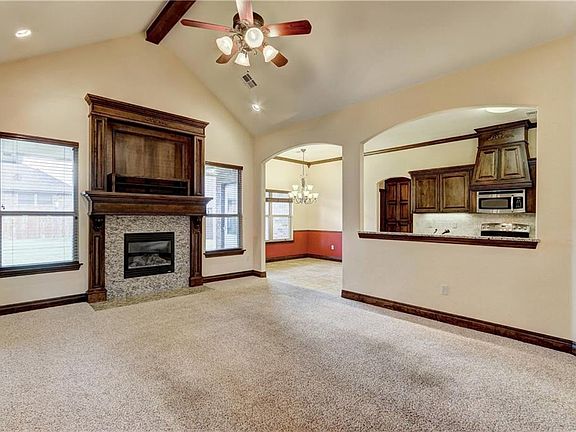 This is a WOW house! Seriously..if you appreciate quality finishes and upgrades, this house is for YOU! The extensive landscaping and the curb appeal will grab you first, but once you enter, you will fall in love with the soaring ceilings, the large and open living room/kitchen area, and of course the gorgeous fireplace. The owner has added some special touches of his own complete with stained back patio, storm doors, epoxy on the garage floors, and perhaps best of all, a massive storm shelter sealed with the fancy epoxy on the floors, and a stain and mold resistant paint on the ceiling (this is the cleanest shelter you will EVER see) The closets are wonderful and the master bedroom is to die for. This is literally the perfect house!