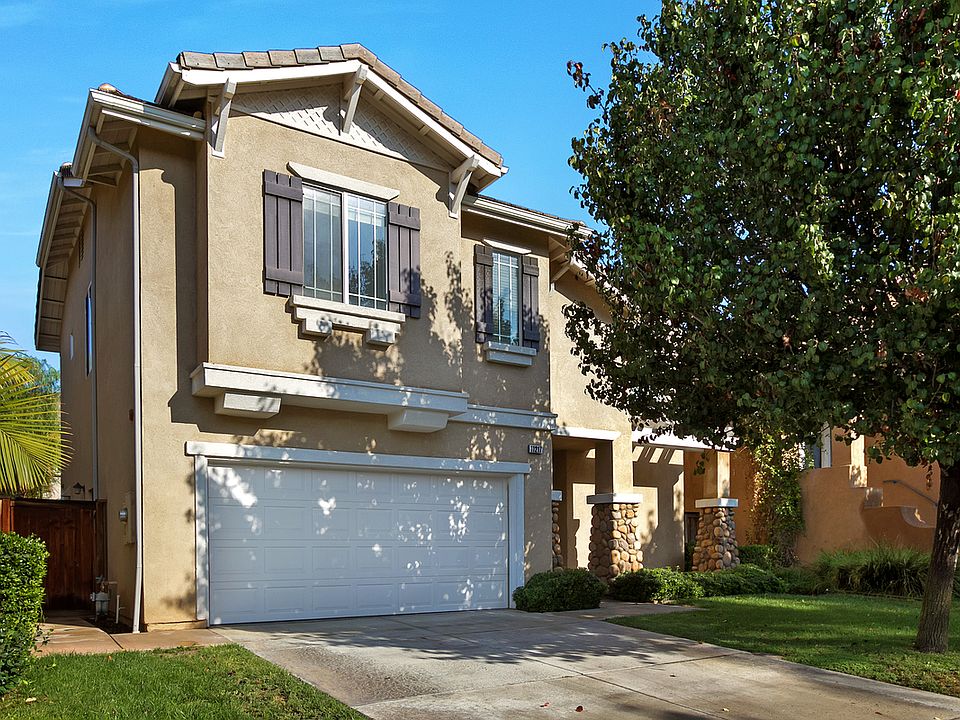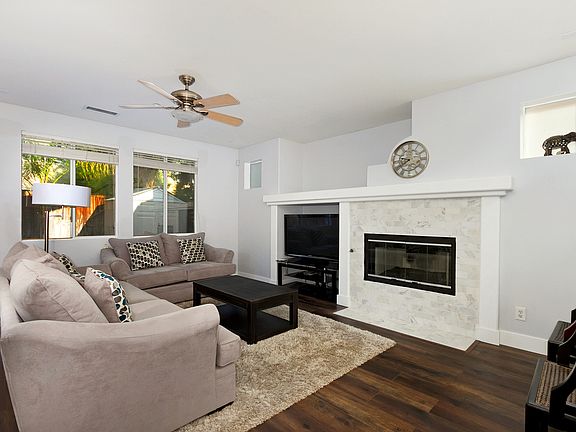A charming home in the desirable gated community of Riverwalk "Tiburon". This immaculate 4 bedrooms/ 2.5 baths home has an open floor plan for a family to enjoy a spacious living room with a cozy fireplace and new wood laminate flooring. It comes with a recently upgraded kitchen complete with Corian countertops, Butcher block center island, Stainless steel appliances and plenty of storage, and direct access to the two car garage. Upstairs you will find four bedrooms, 2 bathrooms, a study/office nook and a convenient laundry room. The master suite offers a roomy walk-in closet, double sinks and a bathtub perfect for relaxing. The backyard is low maintenance and is perfect for small gatherings. HOA includes Pool, Basketball Court, and Kids playground. This home is conveniently located near the 91/15 freeway, Tyler mall, Dog Park, Metro link Station, and Schools.