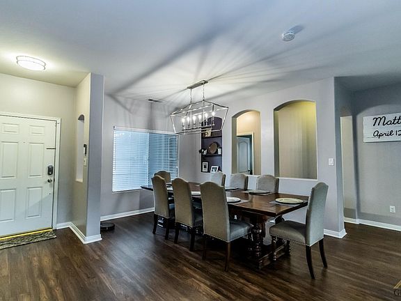 You will feel like you are in a model home as you tour this beautifully updated 4-bedroom home! Wood-look vinyl planks, newer carpet in the bedrooms plus modern lighting and ceiling fans are found throughout the home! The open split-wing concept floor plan features a spacious family room complete with a fireplace, and a large dining room, making hosting family and friends easy and fun! The kitchen features new cabinets, showcases quartz countertops with subway tile back splash and new stainless-steel appliances, including double ovens. A custom butcher block center island serves as an area for casual dining, features a pull out trash can and has power so you can charge your phones. Both bathrooms have been updated with new countertops and painted cabinets. The spacious master suite features a dual vanity and a large walk-in closet. The big backyard has a large, covered patio, plenty of grass for the kids and pets to run and play and a nice garden area.