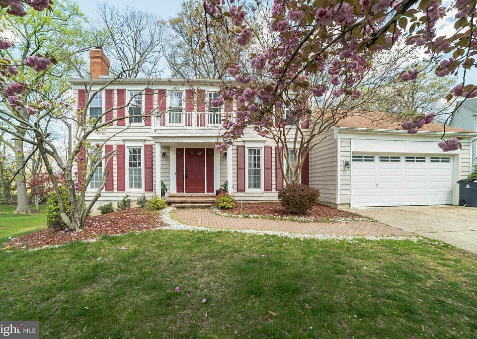 Welcome home to this gorgeous colonial style home with winding cobblestone pathway and beautiful pink trumpet trees blossoming in the spring! The stately exterior includes a long driveway, attached automatic 2-car garage, and maroon accents against a cream exterior. This home is just as gorgeous on the outside as it is on the inside! Featuring bright, light spaces, hardwood floors, recessed lighting, and crown molding throughout. Streams of light fill the living room, courtesy of the floor to ceiling windows! Enter through the double glass french doors to the attached den, with built in bookshelves, perfect for a home office! Gorgeous formal dining room, and beautiful family room with access to the upper level deck from the sliding glass doors. The tile floored kitchen with nearby nook is a delight! Featuring all black appliances, including a double door fridge, this kitchen has a double sink with window view, plenty of cabinet space, and generous amount of counter space with breakfast bar included. Escape to the master bedroom with an attached sitting room and walk in closet! En suite bathroom with soaking tub and standing shower included. The completely finished lower level has hardwood floors and a carpeted room, the perfect space for a rec room, playroom and gym! Enjoy the beautiful wooden deck, with gorgeous views and steps leading to the open backyard. Includes a full size playground set with slide and swings! Minutes away from Laurel Bowie Road and the Baltimore-Washington Parkway, this home is conveniently located near multiple shopping and dining destinations. This home will not last long, do not miss this one!