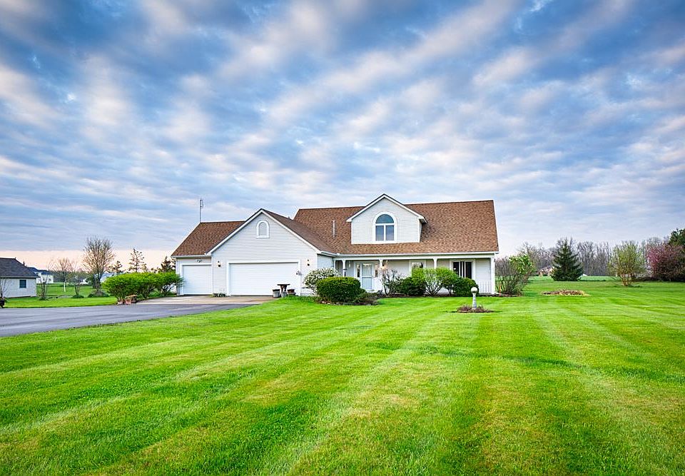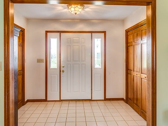 Enjoy a relaxing life style in this country 4 bedroom, 3.5 bath home set on over 2.8 acres. The covered lengthy front porch extends a welcome to family & friends plus provides an ideal place to sip a beverage and unwind. A large foyer with tiled flooring opens to the huge great room with vaulted ceiling & brick, gas log fireplace flanked by tall windows. The great room opens to the dining area with vaulted ceiling. Patio doors provide direct access to the backyard where nature lovers will delight in expansive views of surrounding cropland from the patio. The light & bright kitchen is furnished with an abundance of raised panel oak cabinetry, a tiled backsplash, a planning desk, plus the island offers a wrap-around bar for casual meals. Conveniently located next to the garage entry door is the half bath/laundry room with cabinetry for organization. Retreat to the roomy master suite complete with walk-in closet and private en-suite bath. Bedroom #2 currently used as an office, boasts a vaulted & beamed ceiling. A 2nd full bath with walk-in shower completes this floor. The upstairs space is perfect for children, guest quarters or multi-generational living. This floor is anchored with a vaulted & beamed family room with crescent picture window. Two additional spacious bedrooms and a 3rd full bath complete this floor. The long L-shaped driveway ensures plenty of parking spaces. A 3 car garage & garden shed adds flexibility & storage. Special details include easy-care wood laminate flooring throughout the main floor, Spanish lace ceilings, colonial pine trim package with 6 panel solid interior doors, 90% HE furnace, maintenance free exterior, plus all appliances are included. Tons of closets throughout the home & a floored attic above the garage provide plenty of storage space. Eligible for USDA financing.