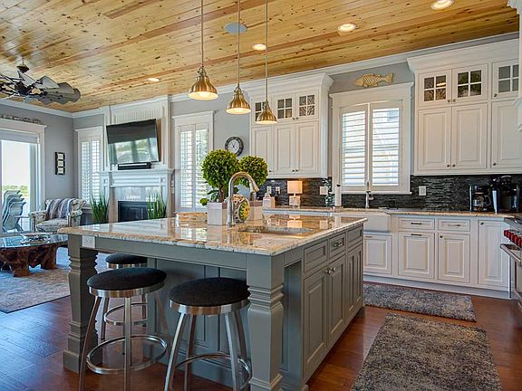 Custom Bayfront home having amazing sunset and wetland views. Overlooking Stone Harbors south end Sanctuary bay. Blaine Steinman designed hand crafted by Seashore Home builders this one of a kind Bayfront offers 5 bedrooms 4.5 baths. Having a custom gourmet kitchen with top of the line stainless appliances, hardwood floors throughout. A huge master suite with a covered porch overlooking the water. Ipe decking throughout, cedar shake exterior, mahogany ceiling porches, irrigated flower boxes. Custom interior trim package, azek exterior trim, gas fireplace, garage. Huge bayside deck, deep water slips.