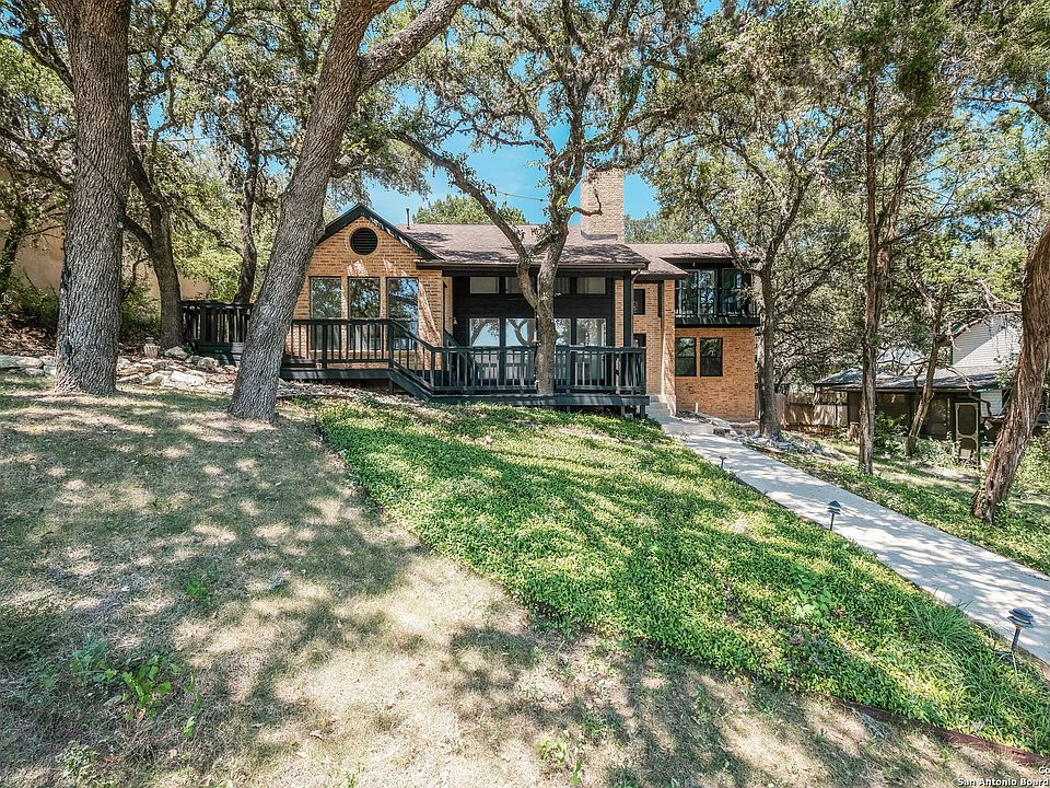 Step into this beautifully renovated 4-bedroom, 2-bathroom, 2,209 sq. ft. home, nestled on a spacious quarter acre lot in the heart of Hill Country. As you approach, you'll be struck by the charm of this home, with its large front deck and the peaceful shade provided by the towering trees. Upon entering, you're welcomed by soaring vaulted ceilings, modern oak-look flooring, and a large brick fireplace as the focal point of the living room. The split level living area is the perfect space for hosting, allowing for multiple gathering spaces throughout the kitchen, dining, and living room. The kitchen features brand new quartz countertops, updated fixtures, and Jenn-Air appliances. Also on the first floor, you'll find two secondary bedrooms, ideal for a study, children's rooms, or guest accommodations. Upstairs, the oversized master suite is your private retreat, featuring a balcony deck with a stunning view over the front of the home-a perfect spot to start your morning or unwind in the evening. The split-level design also includes a loft and an additional bedroom across from the master, providing flexibility and space for your family's needs. Enjoy the incredible outdoor amenities that come with this home. A large front deck is perfect for entertaining, while the community offers a pool, tennis courts, sports courts, and walking trails just steps away. Located just 4 miles from 1604 and with I-10 right around the corner, you'll have easy access to both the serenity of Hill Country and the conveniences of the city. Schedule your tour today and start living the Hill Country dream!