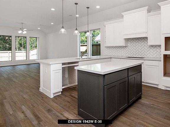 Entry welcomes you with a 12-foot ceiling. Open kitchen offers a center island and spacious pantry. Dining area flows into open family room with wall of windows. Secluded primary suite includes primary bath with dual vanities, garden tub, separate glass-enclosed shower and a large walk-in closet. Abundant closet space in the secondary bedrooms. Mud room off the two-car garage