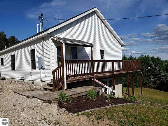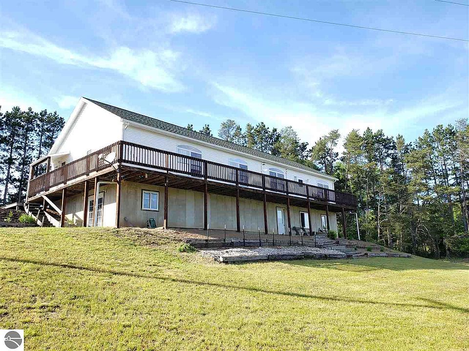 Large open concept, 3 bed 2 bath house, ceilings 9ft ceilings, BOCA Modular built in 2001, full unfinished basement with 2 walkouts (basement has 8 ft ceilings), main floor laundry, 24x32 garage w/ 13x32 lean-to and a 20x26 garage all on 20 wooded acres with great views off the wrap-around deck on back.