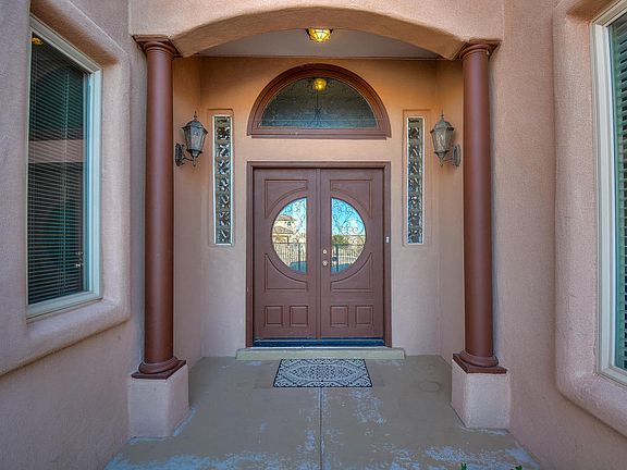 Stunning Cordova Custom Home located on a large 1/2 acre lot in the heart of Rio Rancho! This spacious home features 4,317 sf w/ 5 bedrooms, 4 baths, 2 living areas, an office and a 3-car garage! Gourmet kitchen w/ high-end cabs/crown molding, granite countertops, built-in double oven, microwave, cooktop, LG Fridge, center prep island, pantry & built-in desk/mail area! Gorgeous main living area w/ raised coffered ceilings, hardwood flooring & an amazing fireplace! JR suite w/ private bath. Beautiful master suite w/ hardwood flooring, a romantic 2-way fireplace, outdoor access w/ patio & a spa-like bath! Bath hosts his/hers sink w/ custom vanities, large jetted tub w/ mountain views, walk-in shower & private dressing area! Deck w/ hot tub overlooking the Sandia Mountains! This is a must see