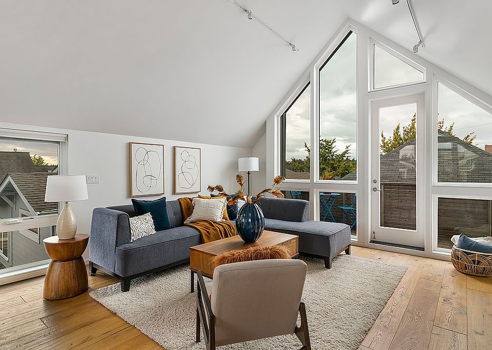 Unit C is the south facing end unit with extra windows and gorgeous Mount Rainier Views. It also has the best views of Seattle skyline of the three units with similar floor plans. This home is stunning from top to bottom with three bedrooms & three bathrooms two walk in closets and the ultimate top floor open living space