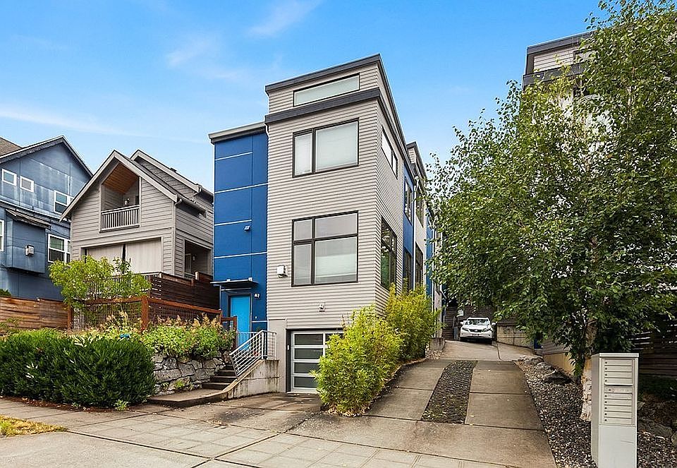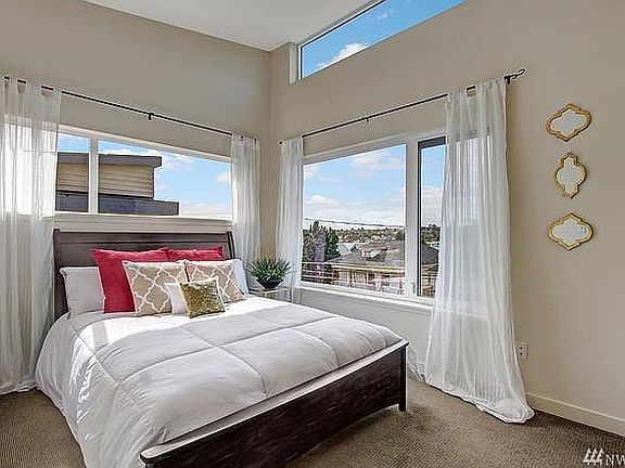 Like new contemporary townhouse filled with natural light from the floor to ceiling windows. Living room/dining room with gas fireplace and newly refinished maple hardwoods. Modern kitchen with stainless steel appliances. Upper level has 2 bedrooms and a full bath, along with a washer/dryer on this level. Lovely territorial views and great central location close to downtown Seattle, light rail, local restaurants, and shops.