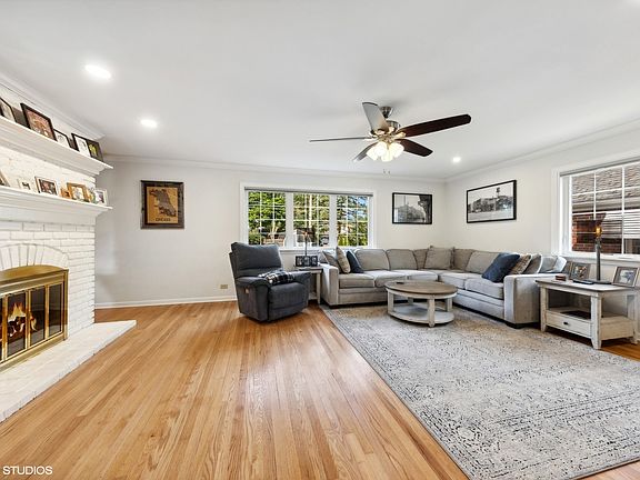 Charming yet spacious ranch in a great location ...only steps to Ebersold Park and walking path, a mile to vibrant downtown DG, and a few blocks to top-rated Hillcrest Elementary. Huge living room with full brick fireplace and views of gorgeous backyard. Beautiful kitchen with cherry cabinets and stainless appliances...and a Dutch door! Pizza oven/fireplace in dining room. A welcoming entry greets you. GREAT yard- 75 x 150 lot with a large deck, private patio & mature trees. Hardwood floors throughout. Four bedrooms all on the main level. Primary bedroom has a private bath. Basement finished 2017(fireplace decorative), includes a huge storage room and laundry. Full tear off roof/replacement (2016), kitchen remodel (2015), chimney masonry repair (2013), new furnace & humidifier (2012), new windows (2012). In 2010 the floors were refinished and the fence was installed. Main level 4th bedroom has washer and dryer hook-up/room for stackable unit. Large driveway...room for additional parking adjacent to garage or garage expansion. Just a lovely home for some lucky buyer who appreciates quality improvements and a quiet neighborhood.