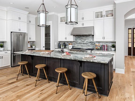 The Hadley plan offers expansive entertaining space, starting with the Dining Room with space for a service bar. At the rear of the home is a Kitchen with island overlooking the large 2-story Morning room, which includes a fireplace and a service bar & cabinets. The first floor is rounded out with a large Great Room; add a double-sided fireplace to warm up the space. A Planning room can be added to have an office or homework station tucked away. There is also a private guest suite with space for a Kitchenette. Upstairs, the hallway has a cut-out overlooking the Morning room, which can be flanked by bookcases. The Premier suite includes a double tray ceiling plus oversized walk-in closet. Convert the bathroom to a spa bath! There is also a large Bonus Room, spacious secondary bathroom, and 2 secondary bedrooms, one of which has a private bathroom. Options exist to add a 5th bedroom with private bathroom over the Morning Room. Tour a decorated Hadley model at Oldenburg.