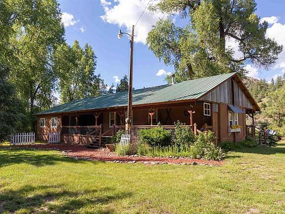 Riverfront Retreat with National Forest Access and Shabby Chic Charm Escape to your own slice of paradise with approximately 150 feet of Blanco River frontage, complemented by the expansive beauty of 133,890 acres of adjacent National Forest. Nestled in a recreational community near an RV park, this property offers privacy with convenient highway access, making it an ideal haven for nature enthusiasts and those seeking a serene retreat. Step into shabby chic charm as you enter this cozy haven, where Pinterest-inspired renovations create an inviting atmosphere. The main living space features an electric fireplace—perfect for cozy evenings—and opens onto two covered decks. One deck offers private access from the primary bedroom, while the entertainment deck overlooks the river, providing a tranquil setting for gatherings or quiet moments. Enjoy the convenience of a sweet water well, renowned for its abundant and high-quality production. Recent upgrades include a new $4,000 furnace and updated heat ducting and venting in 2023, along with new insulation in the crawl space, ensuring year-round comfort and efficiency. A tankless hot water heater installed in 2023 and a new well pressure tank in 2022 further enhance the property's functionality. Outdoor amenities abound with a charming tree house overlooking the river, a sturdy "D" log shed with electricity, and a firepit nestled along the riverbank—perfect for roasting marshmallows under starlit skies. Blue spruce and mature cottonwood trees, planted by the original homesteaders, add to the property's natural allure. Additional features include a propane grill for outdoor cooking and a ping pong table on the front deck for entertainment, ensuring there's something for everyone to enjoy. The roof has been fortified with Propanel metal roofing, providing durability and peace of mind. Renovations have transformed the interior into approximately 1600 square feet of quant living space with a sunroom, this home including 3 beds and a loft embracing rustic charm. Whether you're seeking a full-time residence or a weekend getaway, this riverside retreat offers the perfect blend of natural beauty, privacy, and recreational opportunities. Schedule your private tour today and discover the serene lifestyle awaiting you at this unique Blanco River property.