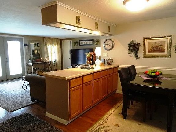 4 BR, 2 Baths, 2 half baths, breakfast room with bar separating LR, wood flrs, French doors to covered 60' front porch, 6'x24' breeze way connects garage. 2 of the bedrooms have 1/2 baths, master bath/jetted tub, 8x12 master closet, master BR is 19x24 with door to private deck. 2 hall closets. Laundry room/ water softener/room for freezers or extra refrigerators. Windows replaced in 2007, roof in 2005, Heat Pump in 2008, new compressor 2014, plumbing & wiring at that time. Flag pole, 3 sensor lights, ceiling fans Blown insulation, crawlspace, 4th BR could be an office, faux wood blinds, tongue & groove wood siding, 8x14 shed, wood privacy fence around back patio/gazebo, metal fencing in back, 19x23 garage has built-ins-shelving-pull down stairs. Landscaping in place, ready to move into. See to appreciate