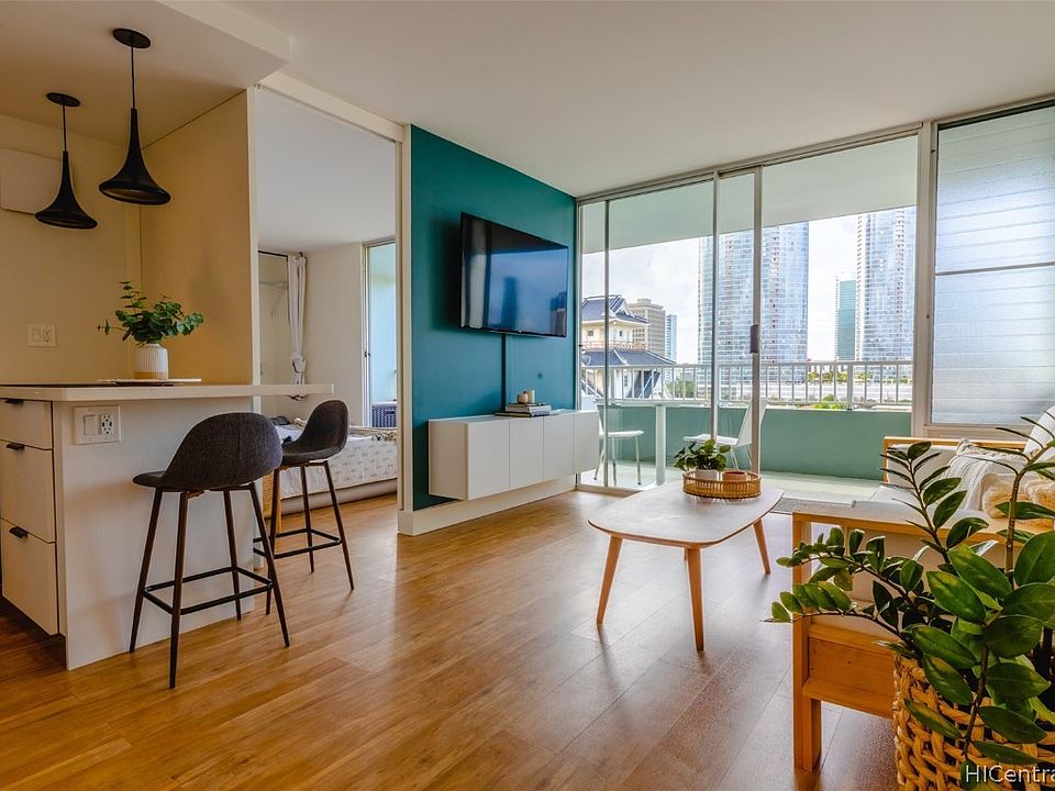 Centrally located one bedroom that has been fully updated. The seller is a craftsman who has customized this incredible unit for himself, and has made this unit every bit as much functional as it is beautiful. Upgrades include: custom cabinets, new LG washer/dryer, new Samsung fridge, Bosch dishwasher, fully updated bathroom with custom tile work, mango luxury vinyl flooring with a polymer core, and lots more... Convenient access to all of Honolulu. Come check it out today.