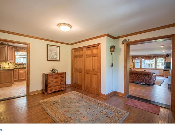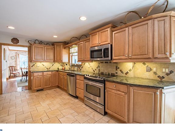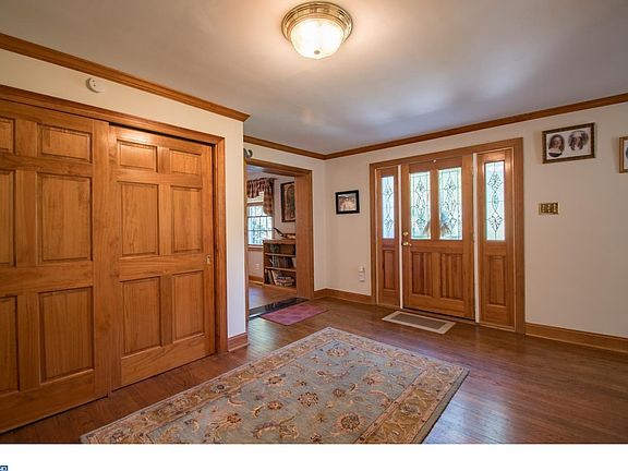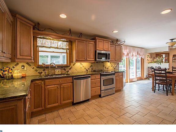 Delaware County and in the award-winning Rose Tree Media School District. This lovely home features 9' ceilings with crown molding on the main level and has spacious living areas. The large, bright kitchen with granite counter tops, stainless steel appliances, and tile floor opens to the eating area with sliders out to the large deck and overlooking the rear yard backing to woods. The first floor familyroom has a beautiful, floor to ceiling, stone fireplace with hearth. Convenient first floor laundry room off of the kitchen leads to the large mud room with brick floor, and inside access to the garage and doors leading to both the front and rear of the home. A large lower level familyroom has a 2nd fireplace, and would be great for a playroom, or media/game room. The 2nd floor features a 22 x 15 master suite with walk-in closet, make-up area, and new luxurious bath with double bowl vanity, whirlpool tub, heated floors and a large tile shower. There are 4 more generous size bedrooms, each with large closets, and an additional bath on this level as well. The original, unfinished basement area with walk-out bilco door, houses the systems. Many updated features include the newer kitchen, Anderson windows, oil burner, and pressure pump for the well. 2017 updates include the electrical panel, new oil tank, and new rear roof to be installed(one layer).