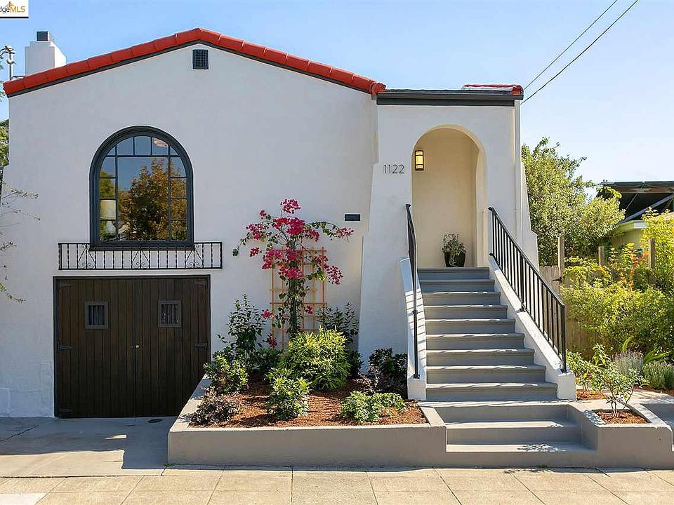 Stylishly renovated 2+BR/1.5BA Mediterranean in central location; 6 blocks to North Berkeley BART and near all the popular spots. Spacious and light-filled, with ideal inside/outside flow from the kitchen and master to large deck and park-like grounds. This layout is on everybody's list! The original details -- wood floors, built-in, fireplace, arched windows and pass-throughs -- blend beautifully with the modern updates. The huge eat-in kitchen, with tons of storage and acres of counter space is great for entertaining and projects. Vast master bedroom with French doors to the deck and garden. Fruit trees, grape arbor, veggie boxes, lawn, fountain are just outside. Peaceful, private oasis. The large finished basement and attached garage complete the picture in this exciting North/West Berkeley location. Freeways, shops, restaurants and transportation are all nearby. Checks off so many boxes...move right in!