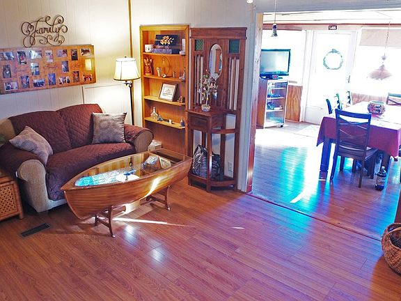 What a place! If you want waterfront! Located on a more private setting with just a few homes, Take time to view this home. Big yard with fenced in on waterside, paved driveway storage building, sun porch, dock, great area for fishing, just around the corner from big water. plenty of room for friends and family. This maybe an older home, but very well cared for. Does not look like a MH.
