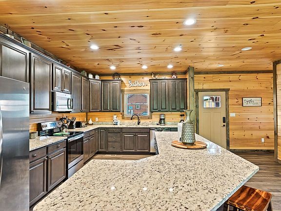 Top quality construction and style in the ultimate location and No HOA!!!! This cash flow cabin is projected to gross $135-150K by several rental companies. This 5 bedroom 5.5 bath luxury log home is situated in a quiet resort close to Downtown Gatlinburg and the National Park. Featuring Top of the line log furniture Hardwood/tile floors, granite countertops & stainless appliances. Beautiful open concept on the main level with a large island, plenty of room for cooking for large groups and plenty of seating for everyone. This well designed cabin has The 4 Master suites that are tastefully outfitted with quality furnishings and decor. The lower level has the bunk room, game room & media room with theater seating and large screen. Drone Photography was used
