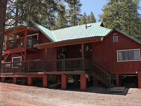 What a great family getaway! This lot is over an acre and really special! Two horseshoe lanes, lighted sand volleyball court, out building, apple trees and plenty of pine trees! Home has the historic/original charm from the 60's but a 2 story addition and other enhancements were done in 1997. Special doors, walls and ceilings. Big kitchen, big great room. Master is upstairs with a sitting area and a private balcony. Also upstairs is a large loft a bath and a secret, hidden room for childs play, storage or?? Workshop, carport and more. This would be an excellent family cabin and/or nightly rental. Must see!