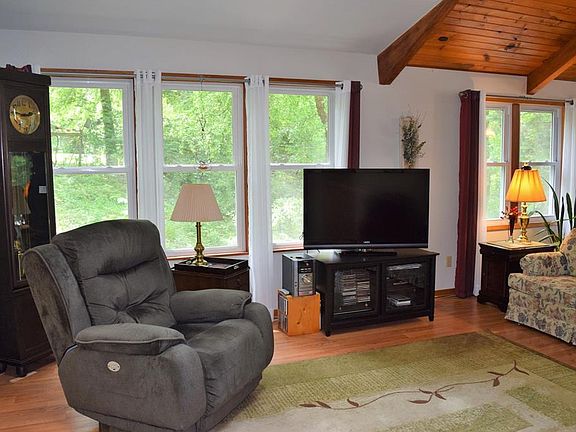 Come home to this secluded acreage on hard surface roads just south of the Cedar River. This incredible lush 19 acre site overlooks the rolling hills of the Cedar River Valley. Palisades Park like setting with groomed trails, an abundance of wildlife & wild berries, peace & solitude. The one of a kind contemporary style home features skylights, vaulted ceilings, park views out your windows, sun room that open to decks on one end of the living area as well as deck off the formal dining area on the other end, kitchen with plenty of cupboards, counter space & center island with area for stools, open staircase to 2nd story loft, walkout lower level rec room with built-ins & family room with wall to wall stone wood burning fireplace. Location-Location-Location & country retreat living between Iowa City & Cedar Rapids in sought after Mount Vernon School District.