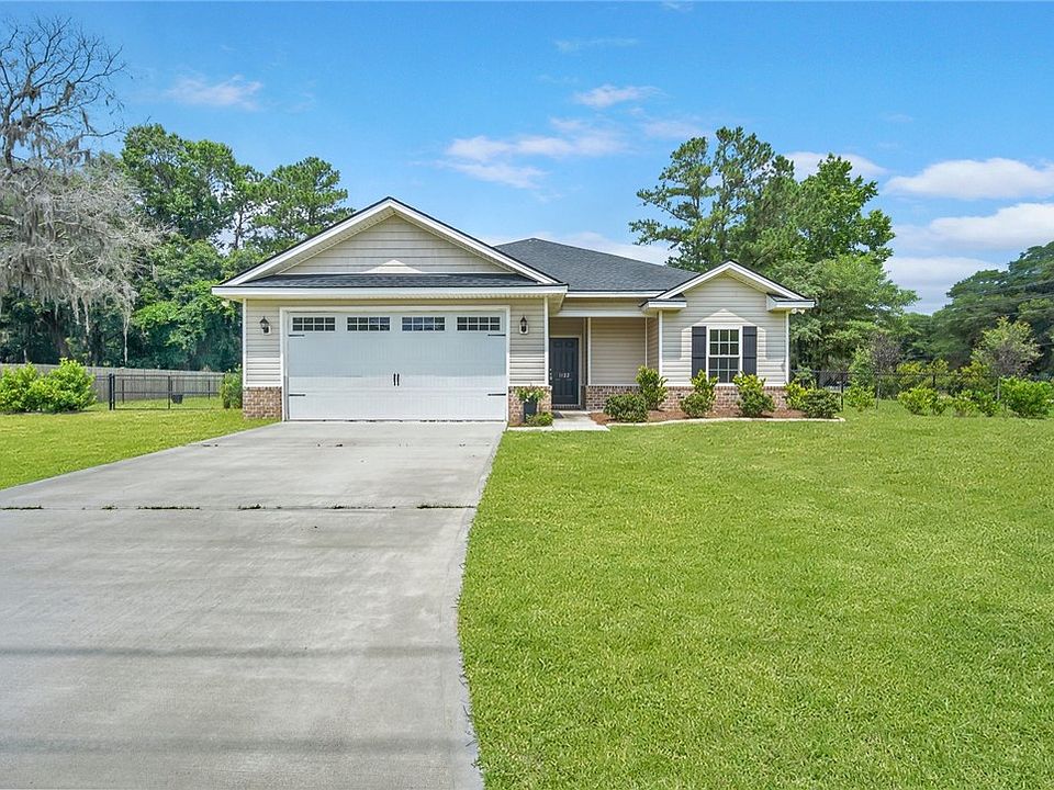Home is in Like New Condition! Features a nicely landscaped lawn with gorgeous Oak Trees & citrus tress and a fenced backyard plus separate fencing for pet or garden area. Home is located across from the community Lake which is landscaped beautifully and stocked with BlueGill, Bass, Carp and Catfish. The Kitchen offers granite countertops, stainless Whirlpool Appliances, pantry, tile back splash and kitchen sink overlooking backyard. The living/dining area features cathedral ceiling and opens onto the screened back porch. There are 30 yr architectural shingles, spray foam insulation, YKK Energy Star certified windows, LVP flooring and home is in move-in ready condition! The 2 car garage features finished walls, insulated garage door, and overhead storage. Easy commute to Brunswick & FLETC (25 mins), Savannah (45 mins) and Hinesville (35 mins). UTILITIES: Coastal Electric, Community Well managed by W&D Utilities, Septic, Darientel for phone/internet, Orkin for routine pest prevention. Easy to show!