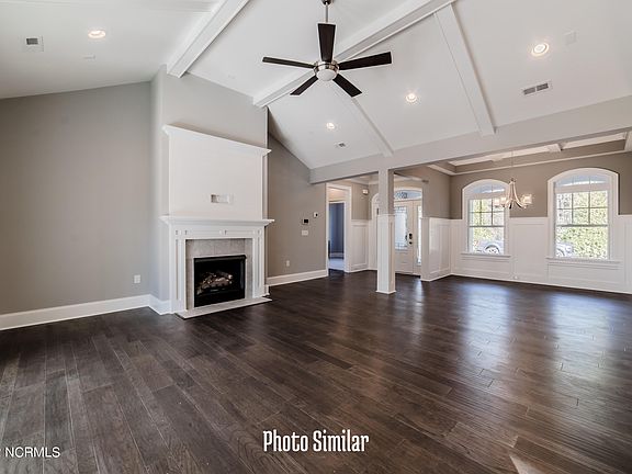 Enjoy golf course views from this home in Sea Trail's newest section, Byrd Watch, which features sidewalks, street trees, and street lights. The Salem is a stunner with James Hardie siding, arched porch detailing, and board & batten shutters. The Foyer features a 10' ceiling & wainscotting and opens to a dining room w/Coffered ceiling & more wainscotting. Just off the dining room is an open-plan Great room w/ vaulted ceilings & accent beams including a 36'' ventless fireplace with custom mantel & tile surround. Sliding doors from Great Room lead to screened w/18''x18'' tiles. The kitchen boasts a beautiful island with quartz countertops & SS apron front sink and upgraded mini bar. The kitchen cabinets have soft close doors & drawers and subway tile backsplash highlighted by undercabinet lighting. SS appliances include a five burner cooktop, wall microwave/oven combo and matching dishwasher. The Owner's Suite bedroom has a crown with reverse crown ceiling & a stunning spa-like bath! Escape to a zero entry tile shower w/ a mosaic tile floor and lighted mosaic niche! Large laundry w/ drop zone + an impressive 2nd floor 4th bedroom w/ WIC & shower as guest quarters! Tankless W/H, epoxy garage floors , mop sink in garage, & 3-zone HVAC system for energy efficiency! Price includes landscaping + irrigation system with 12'x12' patio.