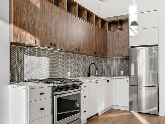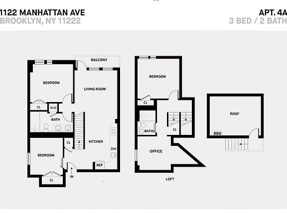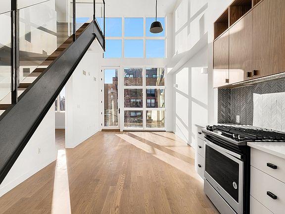 Available July 1st, Apartment 4A is an expansive home designed by award-winning architecture and interior design firm, StudiosC. The triplex features 1,500 sf of living space including three bedrooms, two full baths, a den, a balcony and a massive roof terrace with a built-in gas BBQ offering sweeping Manhattan skyline views. Ceilings that soar to 17 feet, Western exposure and floor-to-ceiling windows bathe the apartment in natural light. 4" weathered white oak hardwood floors run through the home. The sleek 11' bathroom is outfitted with chevron porcelain tiling, 6' soaking tub and double-vanity topped with a honed Caesarstone countertop. Central heating and air conditioning and a vented jumbo-sized washer and dryer round out the offering. Apartment 4A is located on the top floor of 1122 Manhattan Ave, a six-unit boutique development nestled at the top of Greenpoint, one of Northern Brooklyn's most charming and sought-after residential enclaves. The building is just blocks from the waterfront and is surrounded by an array of restaurants, bars and cafes. The G train at Greenpoint Ave and India Street Ferry are a short stroll away. Apartment Features: * Newly constructed in 2019 * Three bedrooms * Separate den/office area * Two full baths * Massive roof terrace with gas BBQ, Manhattan skyline views * Balcony * Floor-to-ceiling windows * 17' ceiling height * Weathered 4" white oak hardwood floors * Central heating and air conditioning * Vented jumbo-sized washer and dryer Kitchen Features: * Honed Caesarstone countertop * Integrated Bosch dishwasher * Matte black Kohler fixtures * 28" custom vent hood Bathroom features: * Double vanity * 6' soaking tub * Custom chevron porcelain floor tile * Kohler matte black fixtures Neighborhood Features and Transportation: * Close to the neighborhood's best restaurants, bars and cafes including Glasserie, Champion Coffee, Bakeri, Esme, Saint Vitus Bar, Brooklyn Ice Cream Factory, Le Fanfare, Lobster Joint, Brooklyn Lantern, Milk and Roses, Ashbox Cafe, Sweetleaf Coffee Roasters, Eagle Trading Company, and Anella. * Other neighborhood highlights include Newtown Barge Park, Greenpoint Playground, Gourmet A'Fare Market, Archestratus, Pure Barre and The Greenpoint Gallery * Transportation: G train (only 1 stop to Long Island City, connects with the 7 to Midtown) and Ferry to Financial District and Midtown (34th Street) Equal Housing Opportunity. All information furnished herein is from sources deemed reliable. No representation is made by MNS nor is any to be implied as to the accuracy thereof and all information is submitted subject to errors, omissions, change of price, prior sale or lease, or withdrawal without notice. All dimensions are approximate. For exact dimensions, please hire your own architect or engineer. MNS, Licensed Real Estate Broker. 40 N 6th Street, Brooklyn, NY 11249