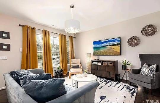 Welcome to Midtowne at Meridian Available to move in November 7th 2025, Ready to move in Rental home. A beautiful 2 story Townhome with 3 bedroom, 2.5 bathroom Town home close to everything South Durham has to offer. Inviting living area opens to a beautiful, chef's kitchen and dining room. The dining area opens to a patio. Perfect for relaxing! Oner's suite features a dual-vanity and large, walk-in shower. Enjoy the bright, light filled views in every room. All appliances are great including the Washer and Dryer that is provided in the rental home. Enormous kitchen with gorgeous maple cabinets, granite counter tops, tile backsplash, SS gas range, dishwasher & microwave. Classic hardwood floors throughout the large & open first floor. It has 2 assigned parking spots right outside the Town home and lot of guests parking next to the Townhome.