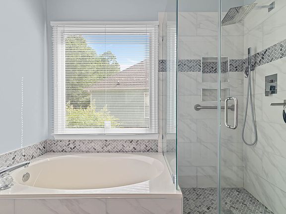 The spacious owner's suite includes an updated en-suite bath with a freestanding glass shower, garden tub, and double vanity. Two additional bedrooms offer great closet space, and the laundry room includes a utility sink for added functionality.