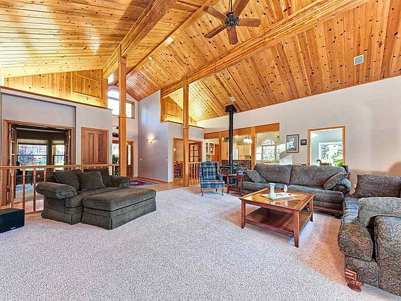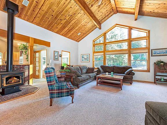 EXCEPTIONAL. EXTRAORDINARY. OUTSTANDING OPPORTUNITY IN GOLDRIDGE. Located on over a half acre lot in GOLDRIDGE ESTATES, you are immediately aware of this Premiere Neighborhood! Private and secluded, but close enough to walk into downtown Graeagle! Home was built with thought and consideration for years of enjoyment. Enter the Great Room with soaring ceilings, large windows and a cozy corner wood stove (there is also forced air propane heat!). The KITCHEN has recently been remodeled: GAS cooktop on the Island with down draft and beautiful Leathered Granite counter tops and porcelain tile flooring. Then STEP OUT INTO THE BREAKFAST ROOM (SUNROOM) newly remodeled and a Slider onto a huge REAR DECK, including a pad for hot tub---wired (50 amp circuit) and ready! Formal Dining Room is ready for you as well as private Office Space. Master Suite on main floor with beautiful bath (Jacuzzi tub) - dual sinks, granite and absolutely lovely! UPSTAIRS - you will find two spacious bedrooms with a full bath - perfect for the expanded family or guests! There is a spacious laundry/utility room.... then attached three car garage (insulated) for lots of storage. OTHER FEATURES WORTH MENTIONING: ALL wood Pella Windows throughout, Doug Fir Doors, Built-in Surround Sound, in-line heater in Jacuzzi, AND MUCH MORE! Purchase the 1/2 acre LOT NEXT DOOR!