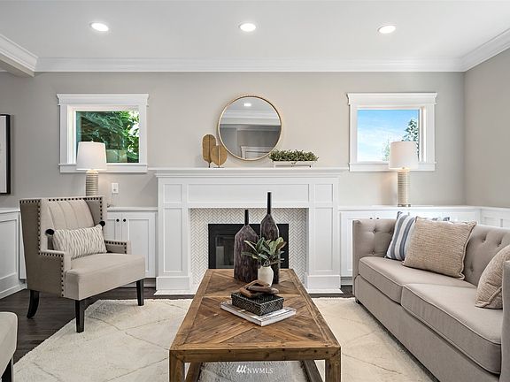Beautifully permitted remodeled Greenlake craftsman features 5 bedrooms, 3 baths, wood floors, stunning trim/mill work and wainscoting throughout, vaulted ceilings, and nearly 3000 sq ft of living space. Gorgeous island kitchen includes soft close shaker cabinets, quartz slab countertops, and stainless steel appliances. Bathrooms showcase new vanities, tile showers and tile floors. Huge primary suite with sitting area, walk in closet, and walk in shower. Fully finished daylight basement includes a separate entrance, updated wetbar, with 2 beds 1 bath and a living area. Alley access with gate can comfortably accommodate parking for 3-4 vehicles. Excellent location close to Green Lake and easy commutes anywhere.