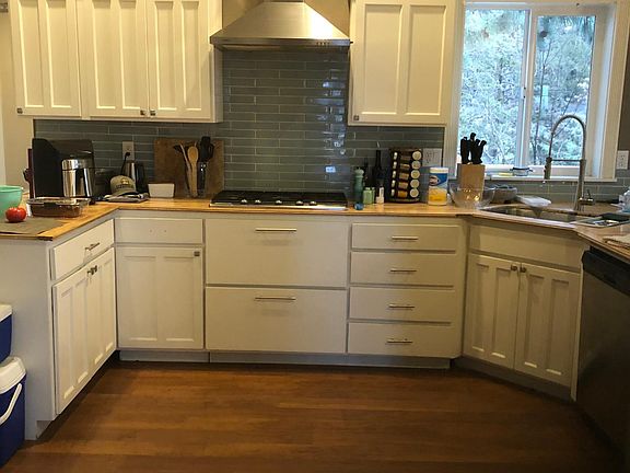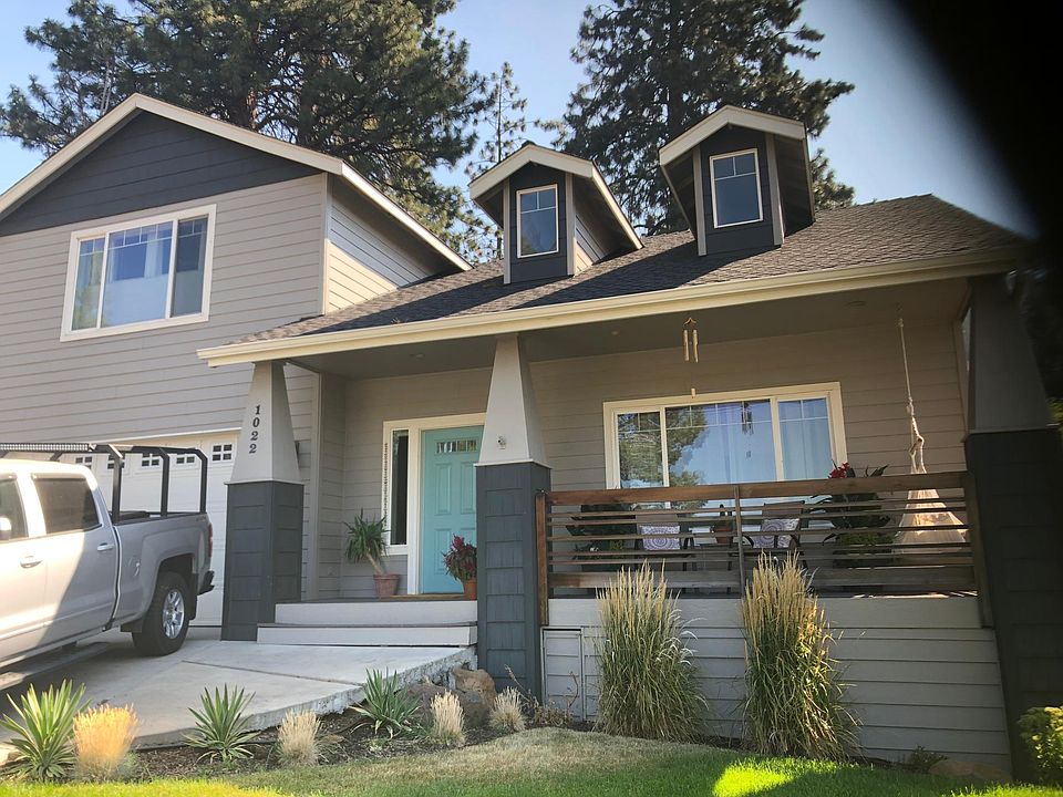 Out front see great mountain views and out the back gate you are on Pilot Butte. Enjoy the, extra parking, and fenced partially shaded back yard. Downstairs is a a Living room, separate family room with a gas fire place, dining room, laundry room with dog door to dog run, and . 5 bath. Upstairs are three bedrooms (the missing picture is identical to the small bedroom) . The Main BR features a fantastic mountain view, 2 walk in closets and a full bathroom with double sinks. The other 2 bedrooms are identical (one pictured), and face Pilot Butte. They are served by a bathroom with 2 sinks and a tub/shower. The Kitchen is getting new white counter tops and has a glass tile backsplash. The deck is served by two doors one off the family room and one off the dining area. The back yard is fenced, partially shaded, and has a lawn and garden plots. Due to the fragile nature of the back lawn 1 small dog is allowed. (under 20 lbs) for an additional monthly fee of 10.00 This house is managed by the owner so you do not have to deal with property management companies. This is a non smoking property. You are responsible for all utilities and garbage service. Lawn mowing is included but lawn watering and flower beds are expected to be maintained by the tenant. There is no irrigation system. Dog fee is 10.00 month.