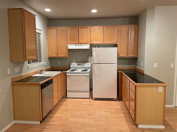2 Bedroom, 2 Bath townhome in the Notting Hills neighborhood. Close to Nike and and conveniently located close the Cornelius Pass Road! Enter your new home through the main entrance in the driveway to be welcomed by the spacious great room with an open kitchen at the front and Real Oak hardwood floors covering the entire 1st floor. In your kitchen, you have granite countertops, and lots of cabinet space. Your amenities include an energy efficient Refrigerator and Dishwasher as well as a Stove/Oven combination. Upstairs, your home has 2 bedrooms with vaulted ceilings. your primary bedroom has a private ensuite bathroom with a tub/shower combination and a classic closet. Your other bedroom not only has a classic closet but also a spacious walk in closet on the opposite end. The laundry center includes a Full-size washer and dryer. The 2 bathrooms are located at the second floor with a tub/shower combination. Back on the main level, through the back is your own private backyard with a covered patio! Your home his near many locations including Nike, Whole Foods Market and Orenco Station, home to many businesses. Nearby parks include Nobel Woods park and Tualatin Hills nature park Visit our website to apply and view other homes we have available!